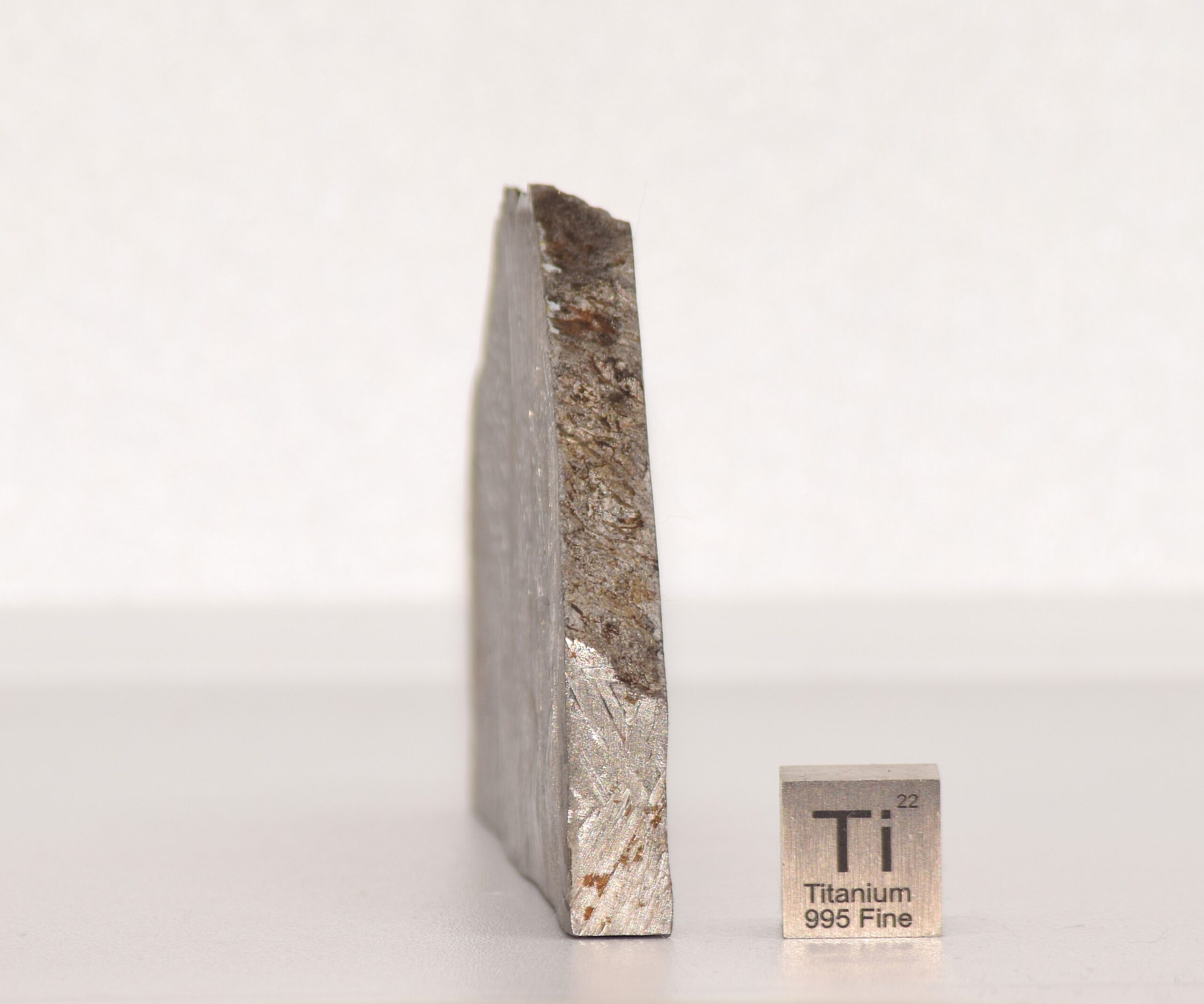 This 140 g iron meteorite slice is from the Aletai meteorite in Xinjiang, China. The slice preserves the natural metallic structure typical of iron meteorites and clearly displays the characteristic Widmanstätten pattern. It has been carefully cut to show the internal features of this octahedrite section. A certificate of authenticity is provided by members of leading meteorite associations.