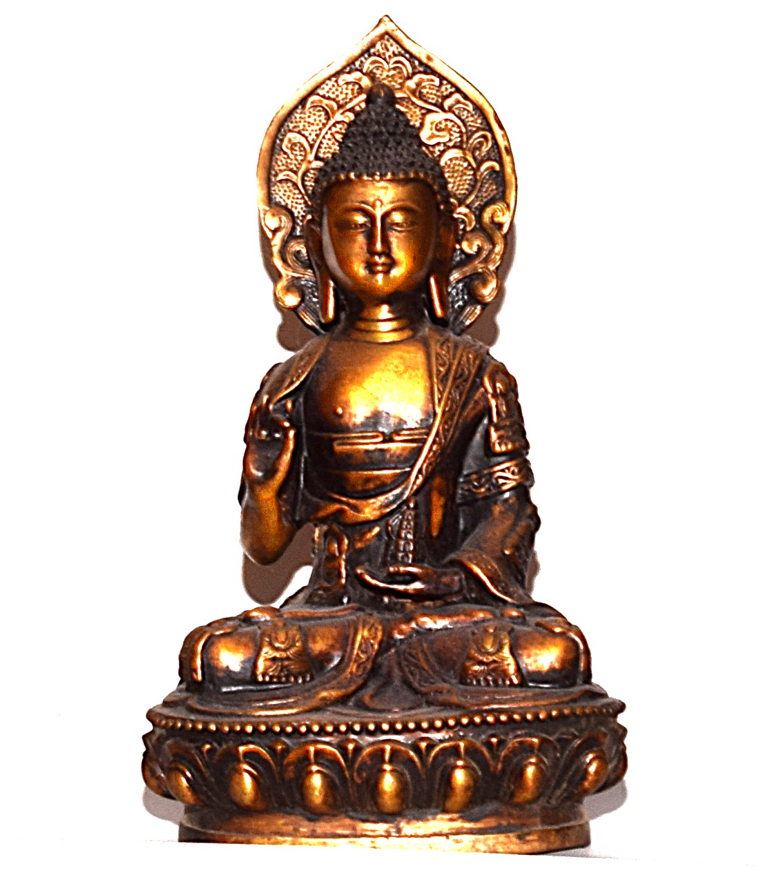 Buddha figures of this type hold an important place within Chinese Buddhist devotional practice. The lotus base symbolizes purity and spiritual awakening, rising unstained from the earthly realm, while the aureole behind the head emphasizes the enlightened nature of the Buddha. The Vitarka mudra represents intellectual discourse and the teaching of the Dharma, reinforcing the figure’s spiritual significance.