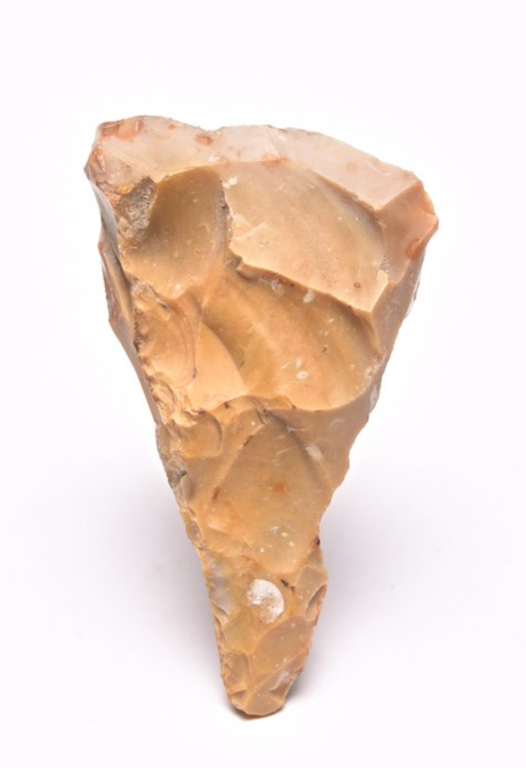 This exceptional Mesolithic flint axe originates from Denmark and dates to the late Mesolithic period, around 5300–3950 BC, associated with the Ertebølle culture. Measuring 92 × 54 mm, the piece is remarkably well preserved, reflecting high-quality workmanship and careful use. Its distinctive form and excellent condition make it a striking example of early Stone Age toolmaking in Northern Europe.