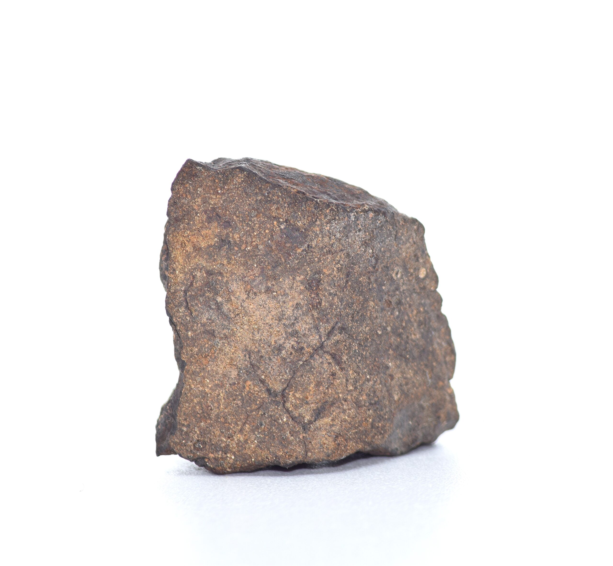 This specimen is a 15.7 g fragment of the meteorite NWA 16415. NWA 16415 is classified as a carbonaceous CO3 chondrite, a rare group of primitive meteorites that formed during the earliest stages of the solar system. These meteorites are valued for their primitive fine-grained matrix and characteristic mineralogy, which provide insights into the processes that occurred in the protoplanetary disk over 4.5 billion years ago.