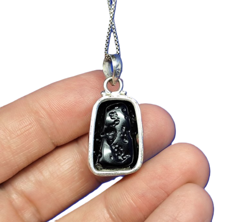 Authentic Tektite Meteorite Pendant in 925 Sterling Silver with Chain – IMCA Certified Cosmic Jewelry